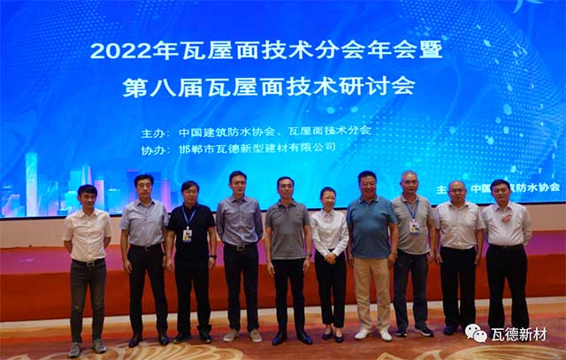 7月27日,由瓦德新材協辦,作為2022第三屆防水行業大會平行論壇的2022年第八屆瓦屋面技術與市場研討會,在南京白金漢爵大酒店召開。瓦德新材董事長謝富強帶隊參加。